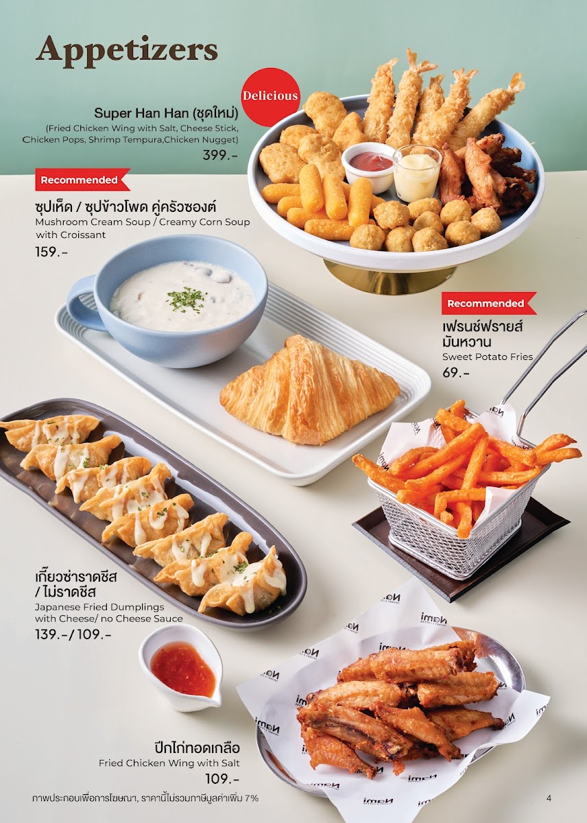 Welcome to Nami Rama 2, a vibrant culinary destination nestled in Bang Khun Thian, Bangkok. This restaurant boasts a diverse menu that spans Western, Thai, and Japanese cuisines, ensuring there’s something for everyone. Among the highlights are Nami’s famous Han Han dishes, where crispy fried delights like cheese sticks and sausages tantalize the taste buds, all priced reasonably between THB 59 and THB 79. For those with a sweet tooth, the Mini Bingsu Set is a must-try, featuring flavors like chocolate and Thai tea for just THB 109.